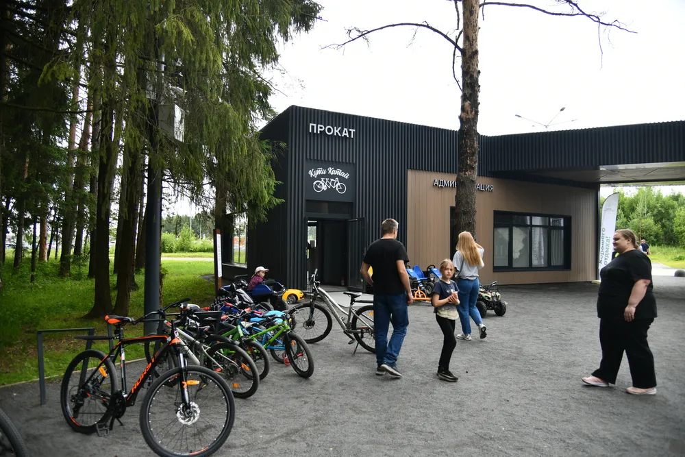 воздухе, веселый паровозик для детей, прокат велосипедов и электромашинок.