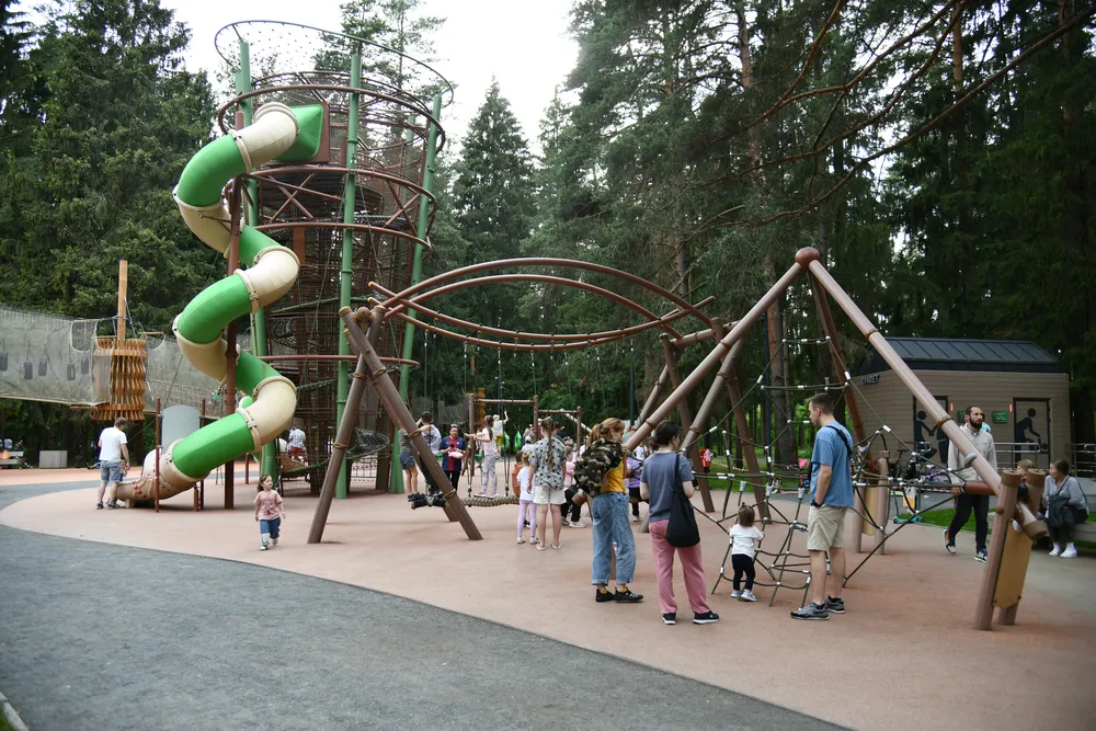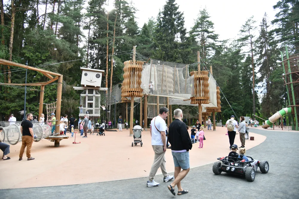 Главной задачей благоустройства было создание комфортной среды с максимально бережным отношением к дикой природе. В ходе работ лес очистили от сухостоя и валежника, сформировали тропиночную сеть. Построили игровые площадки для детей разного возраста и уголки для занятий спортом на свежем воздухе.