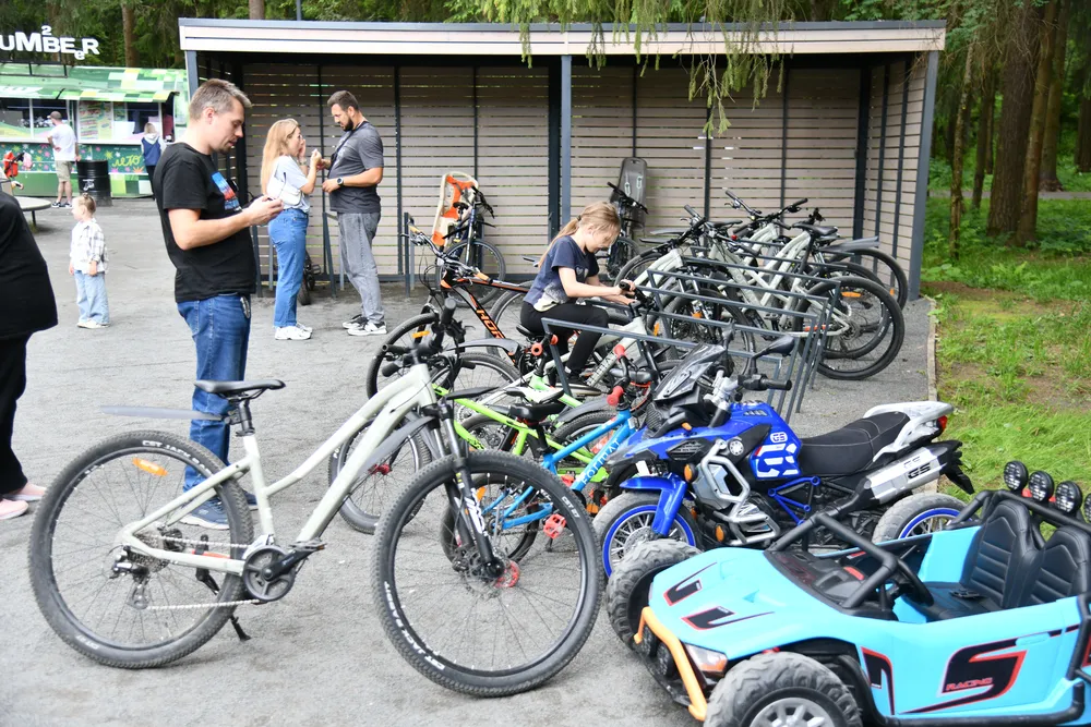 воздухе, веселый паровозик для детей, прокат велосипедов и электромашинок.